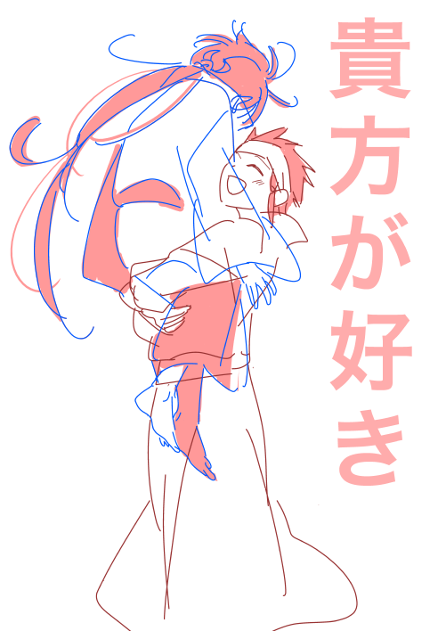 前もこの構図描いたよ 抱っこ好きすぎか